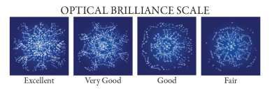 The white reflections in the optical brilliance images represent reflections of light. The more reflections and the more the symmetry of the reflections the better the optical brilliance and the brighter the diamond.